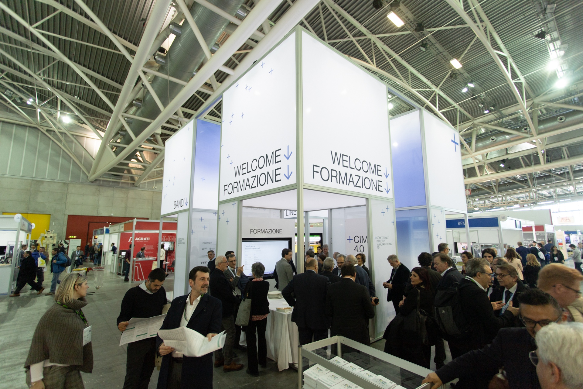 Four thematic areas of “doing” and a corridor of “knowledge.” This is how the CIM4.0 booth is presented, featuring four spaces dedicated to networking, Pilot Lines, Training and the results of the first call: PMTI4.0.