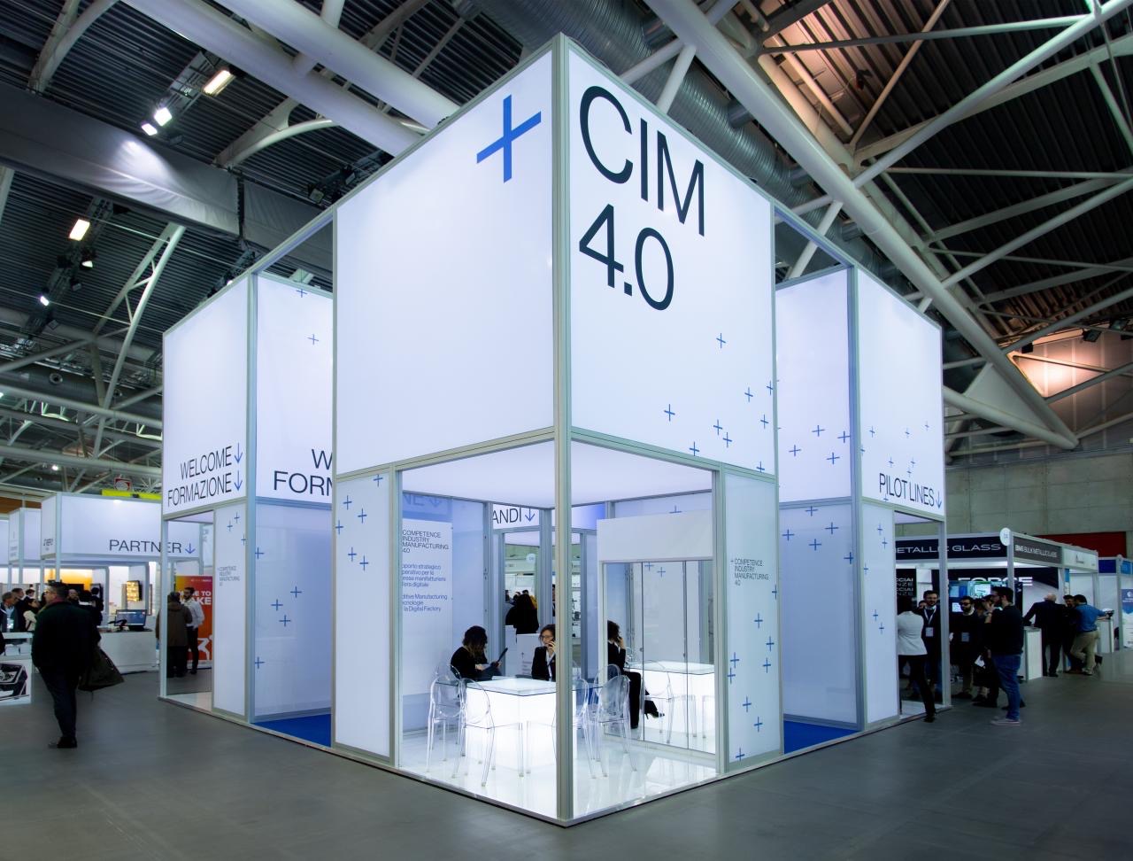 Quattro aree tematiche del “fare” e un corridoio del “sapere”. È così che si presenta lo stand del CIM4.0, caratterizzato da quattro spazi dedicati al networking, alle Linee Pilota, alla Formazione e ai risultati del primo bando: PMTI4.0.